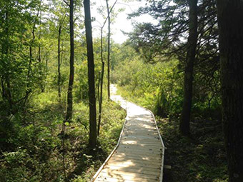 Hanover Engineering worked closely with The Nature Conservancy staff to design a trail route that provides access to important parts of preserved lands, with portions of the trail specifically designed in accordance with the Americans with Disabilities Act to provide handicap accessibility. The trail consists of an elevated boardwalk to cross a shallow peat bog, earthen trails, and a narrower low-impact plank boardwalk for access deeper into the Preserve. The project also includes a parking area, informational kiosk, and a bird blind on a pond located just off the main trail.